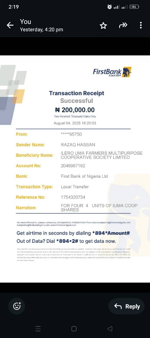This is the balance of 2k for my 1 unit registration. I am Shukurat Omolara Azeez. Uploaded 50k earl