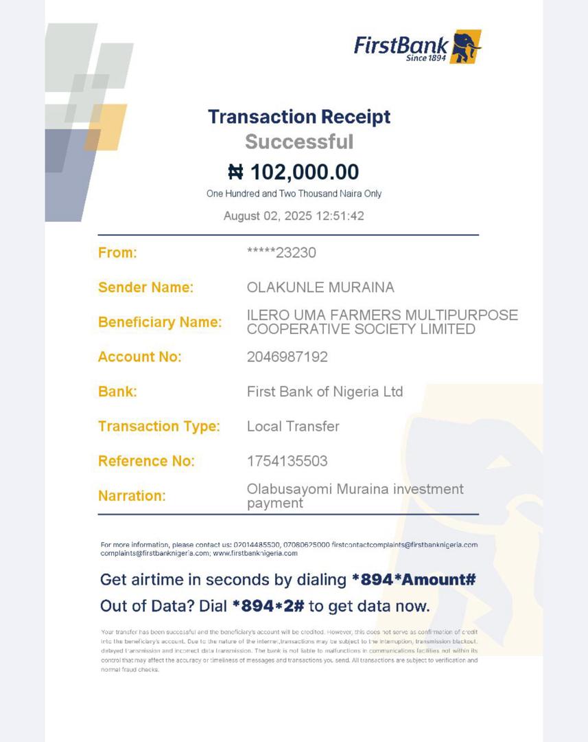 I am replacing my initial receipt of 52k with dis 102k & using the earlier 52k for Basirat A Badmus